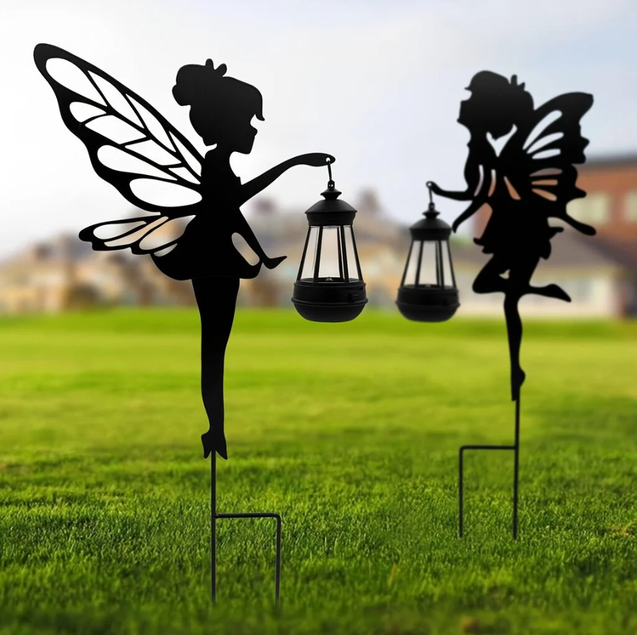 2 kpl koristeellisia aurinkokäyttöisiä puutarhavalaisimia – Keiju lyhdyllä, hämäräkytkin