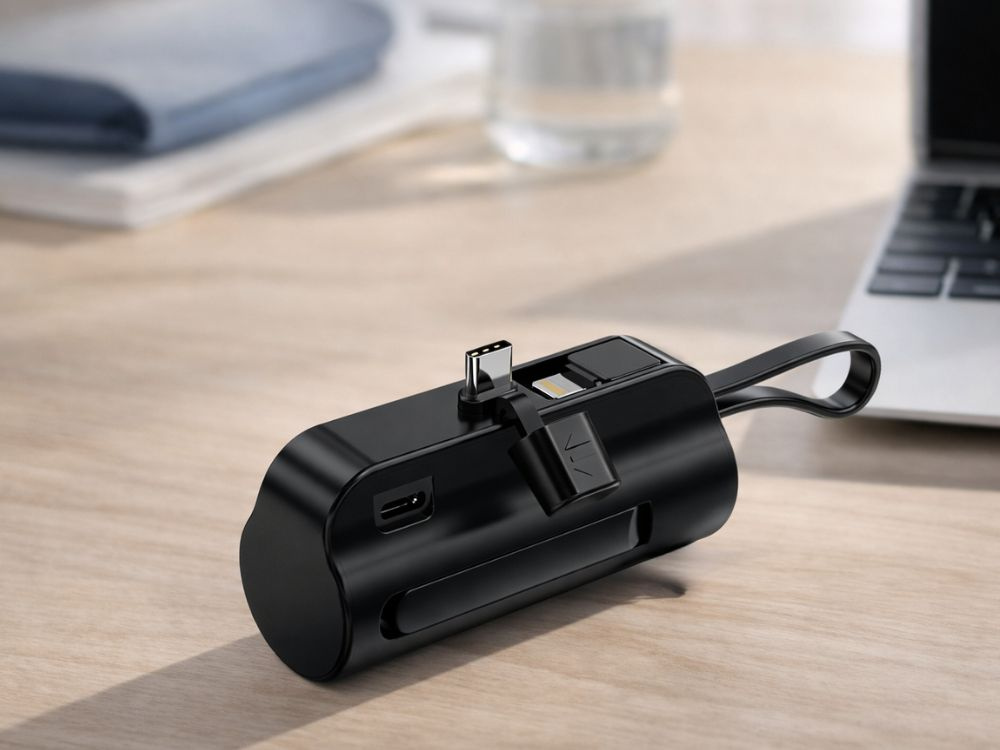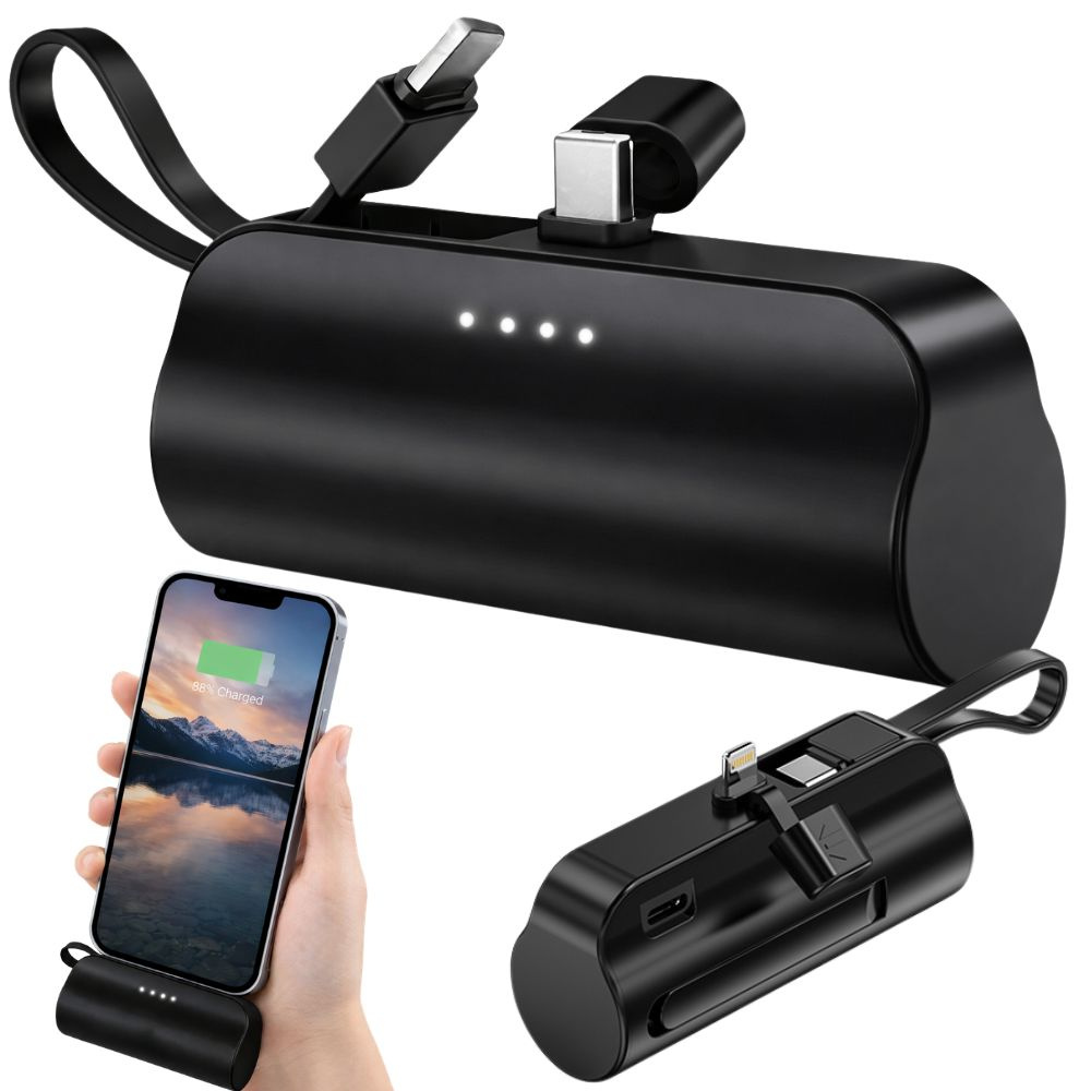 Powerbank 5000 mAh – kompakti, Lightning & USB-C