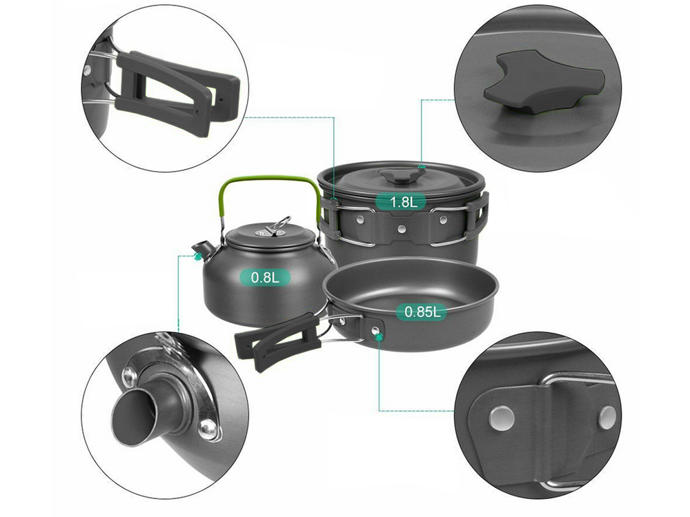 Retkikeitin- ja astiasetti 18-in-1 – kattila, paistinpannu ja vedenkeitin