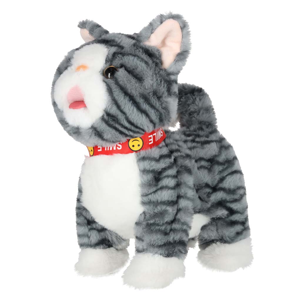 Interaktiivinen kissa hihnassa, harmaa – kävelee, naukuu ja liikkuu kuin oikea lemmikki